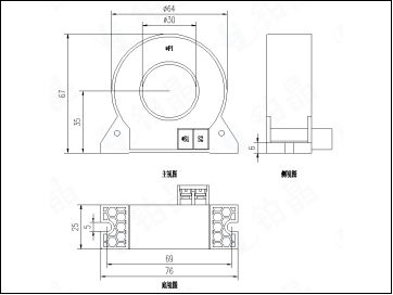CTK160402產品一般的采用小電流信號輸出或者電壓信號輸出,以盡可能的提高產品精度,降低硬件成本。當輸出電流信號時,在安裝前需要把互感器的二次回路接好,以避免安裝時由于二次回路開路產生高壓而發生觸電危險。安裝完畢后需要用尼龍扎帶把互感器良好的固定在被測導線上。